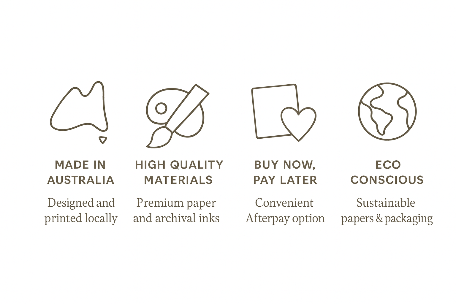All prints are lovingly made in Australia with an eye for detail, quality, and timeless design."